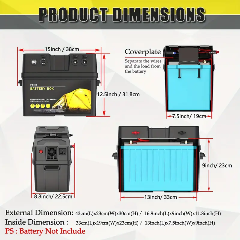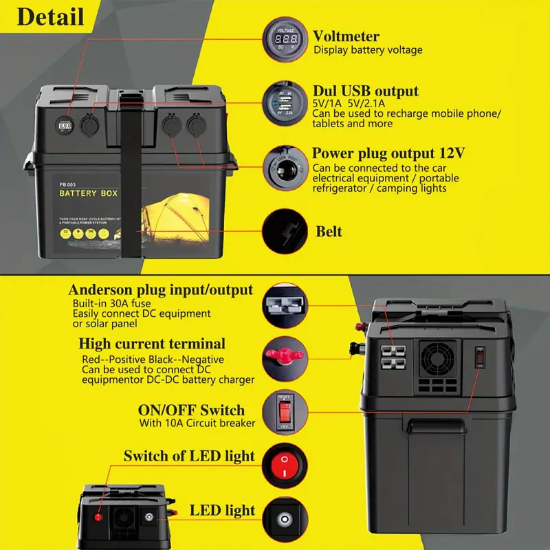 Smart Battery Box Outdoor Portable Multi-functional Mit 50AMP-Anschlüssen 12V-Autoladegerät USB-Outlet Für Wohnmobile, Anhänger, Boote, Kajaks Und Camper